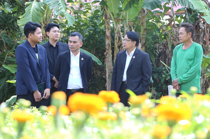 ต่อมา ผู้ช่วยศาสตราจารย์ ดร.คมศักดิ์ หารไชย ผู้อำนวยการสถาบันวิจัยและพัฒนา ได้นำคณะผู้ตรวจราชการฯ ลงพื้นที่เป้าหมาย ณ ชุมชนบ้านโคกสว่างพัฒนา อำเภอธาตุพนม เพื่อเยี่ยมชมสวนดอกดาวเรือง ซึ่งเป็นวัตถุดิบหลักของโครงการ และศึกษาการต่อยอดทรัพยากรท้องถิ่นสู่การสร้างมูลค่าเพิ่ม